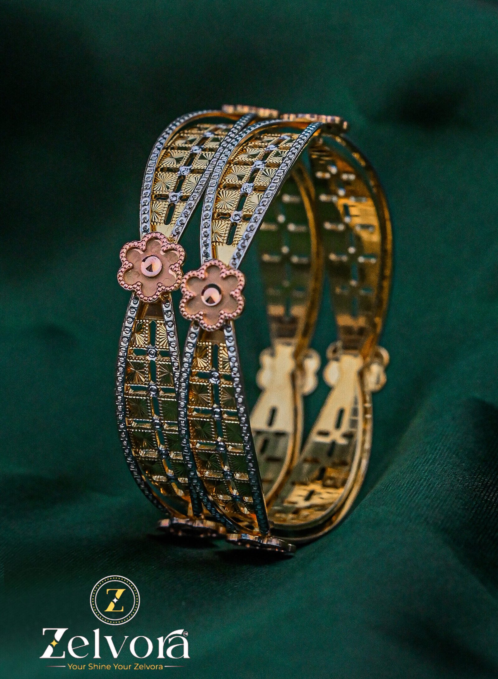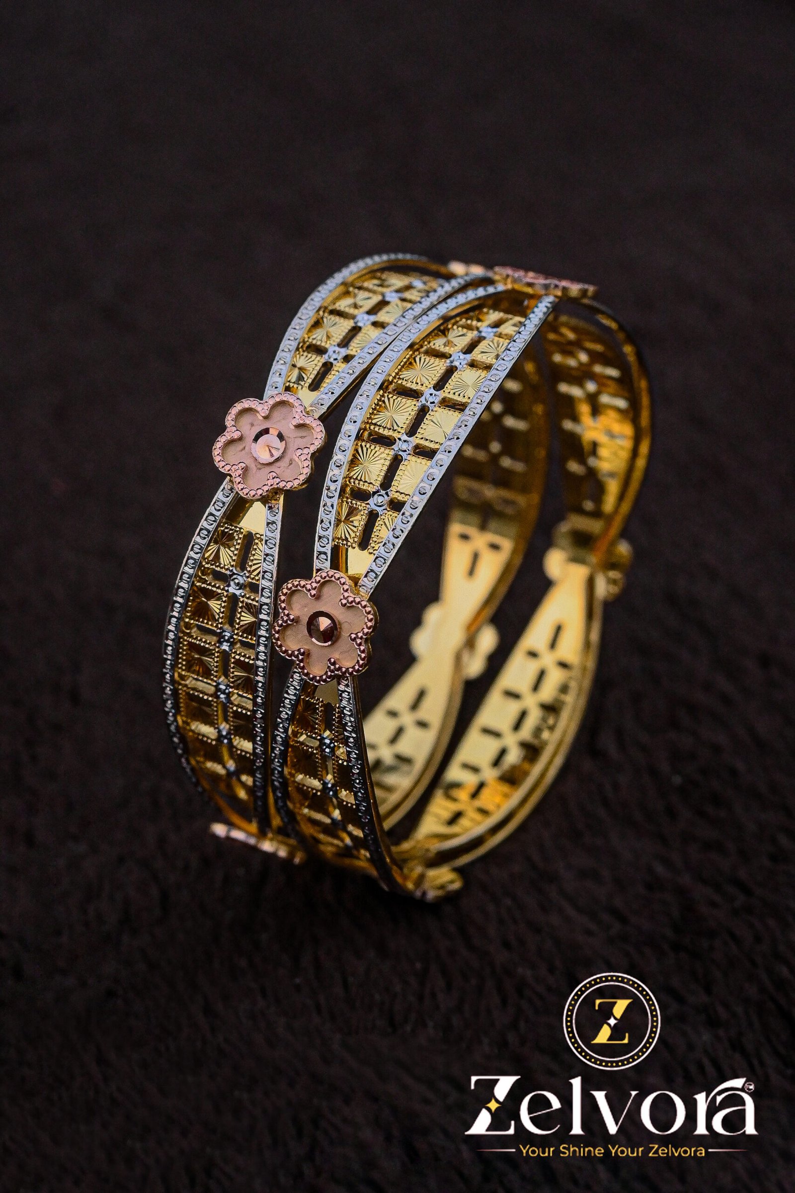 Regal Bloom Bangles – Floral Gold Bangles for Women